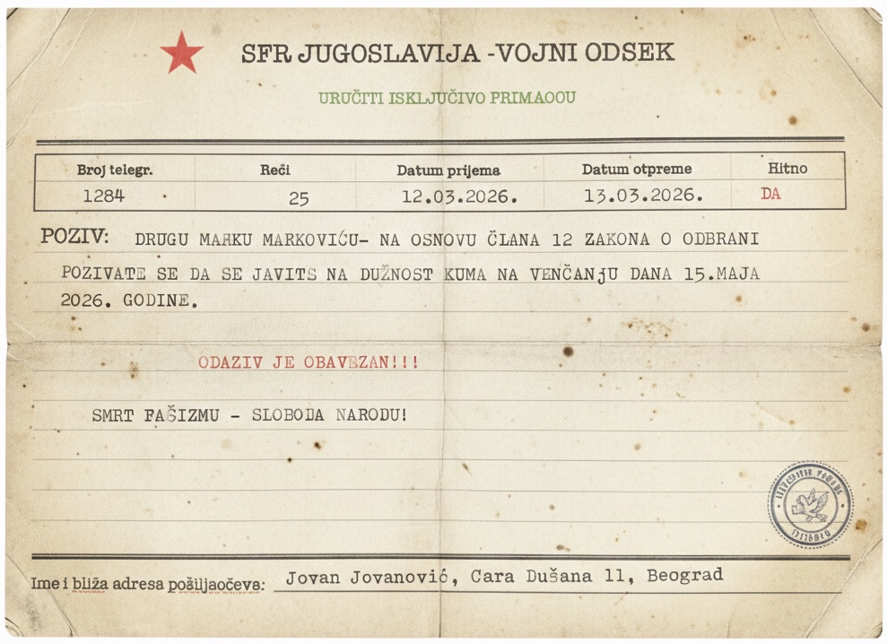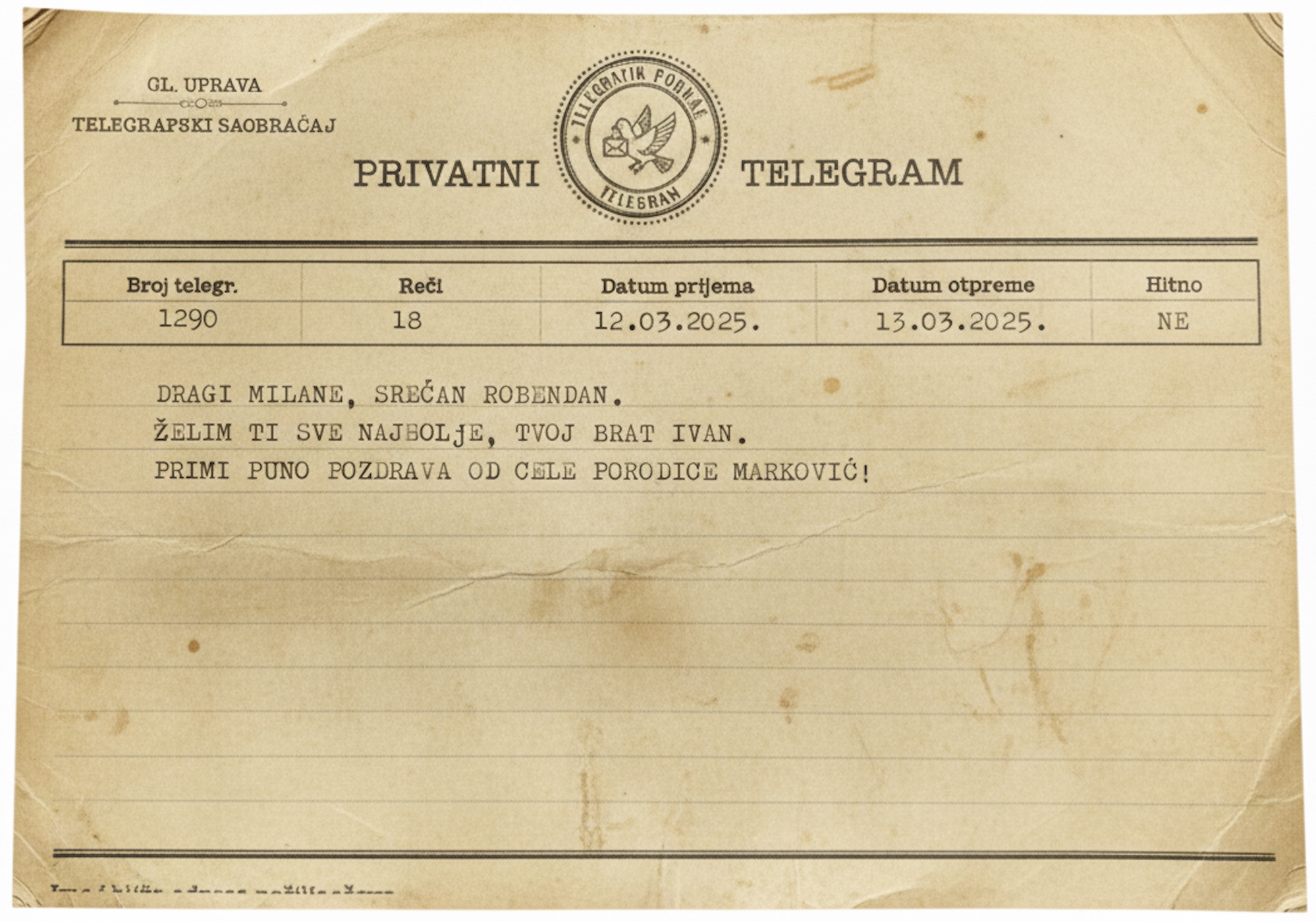 U svetu gde poruke stižu u stotinama, a blede u sekundama, mi smo odlučili da vratimo dostojanstvo napisanoj reči. TELEGRAFIK SRBIJA nije samo servis za slanje poruka. Mi smo čuvari trenutaka koji su previše važni za običan ekran. Verujemo da velike vesti, iskrena izvinjenja i sudbonosna „da“ zaslužuju dodir papira, miris mastila i zvuk pisaće mašine koji pretvara misao u večnost.