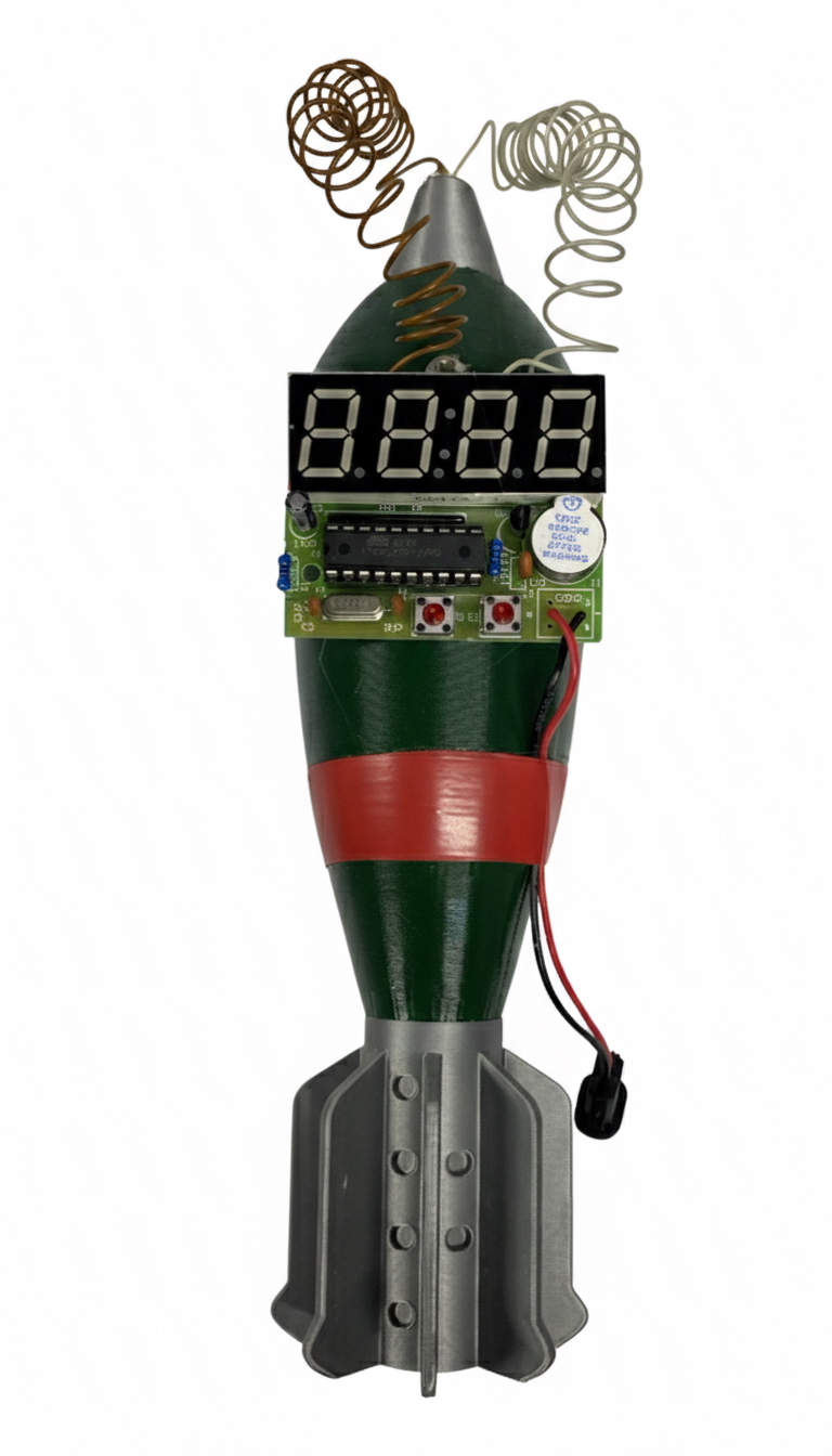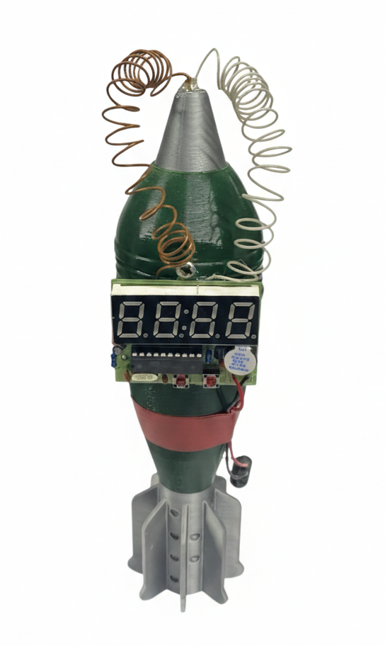 Digitalni sat veoma originalnog dizajna u stilu filmskog rekvizita na minobacačkoj granati koja je visokog kvaliteta rađena 3D štampom.